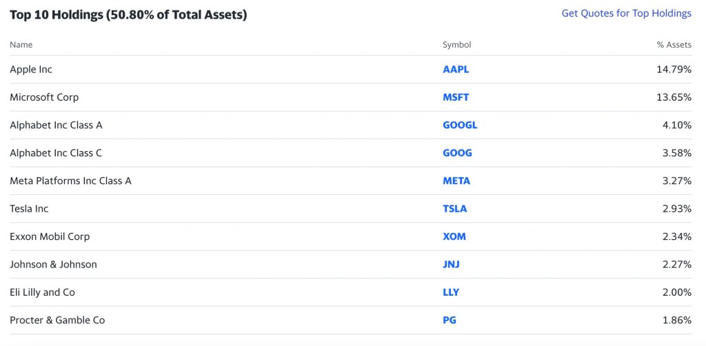 Untuk portfolio Sangat Agresif, sekitar 86% wang saya dilaburkan ke dalam HLAL ETF. Untuk faham dari mana datangnya return ni, kita lihat apa pegangan sahamnya. Berikut adalah largest holdings dalam HLAL;