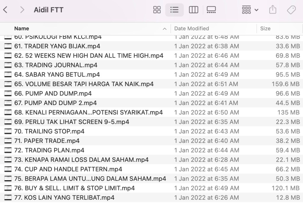 Saya beli course Aidil Full Time Trader pada awal tahun 2022. Honestly saya pun tak ingat dia ni siapa. Rasanya dekat Facebook kot saya come across course dia ni. Sebab sekarang dia dah tamatkan semua course ni. Apapun, klu jumpa saya update sini semula 😭